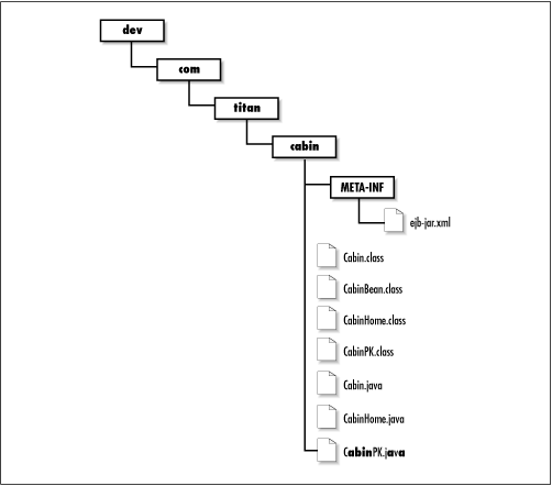 You might have to create the META-INF directory first, and copy ejb-jar.xml into that directory. The TravelAgent bean is now complete and ready to be deployed. EJB 1.0: The JAR File To place the TravelAgent bean in a JAR file, we use the same process we used for the Cabin bean. First, we have to create a manifest file, which we save in the com/titan/travelagent directory: